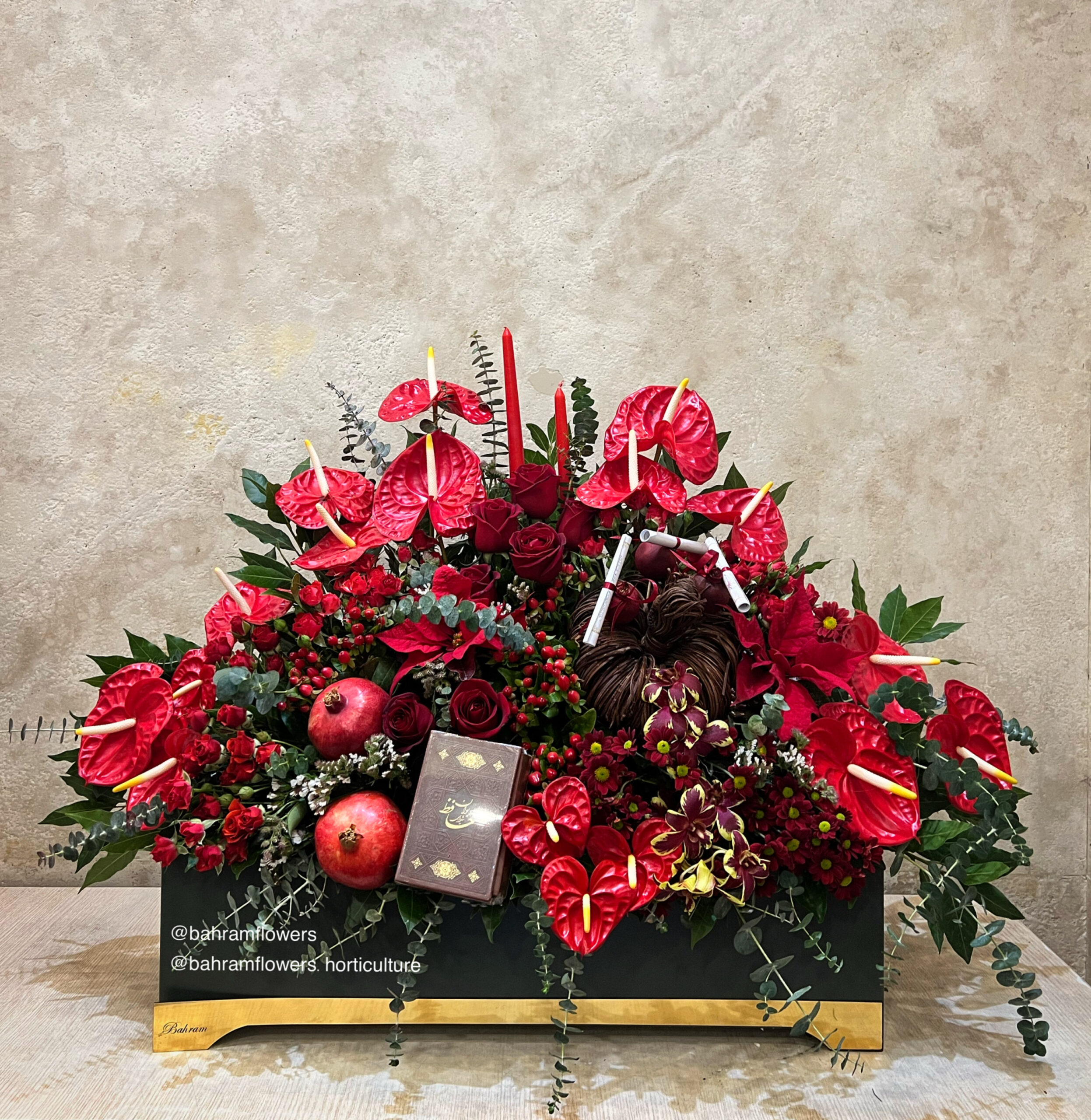 پایه قرمز با رز قرمز